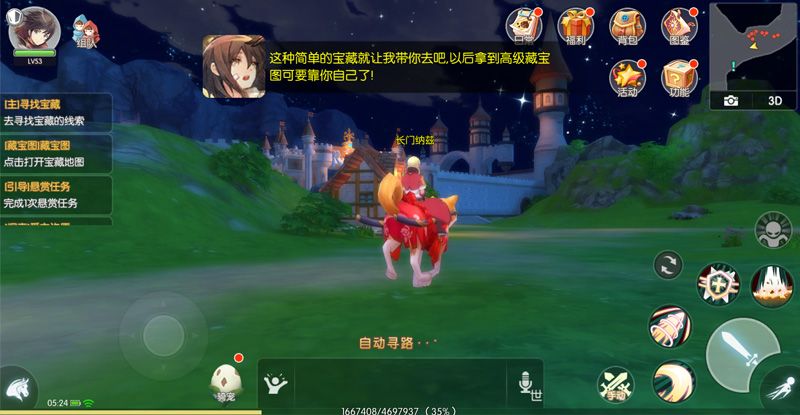 藏宝图有级别之分,以后普通藏宝图将由资深冒险家尼娜为你带路,帮助新手玩家快速熟悉挖宝玩法,解决让新手玩家们最为头疼的寻找藏宝点问题,对路痴们来说可谓是一个大大的福音。高级藏宝图首次寻宝尼娜则不会前来帮忙,需要玩家自己找到地点,成功挖宝成功后,下次同样的藏宝图将享有自动前往藏宝点的寻路服务。
