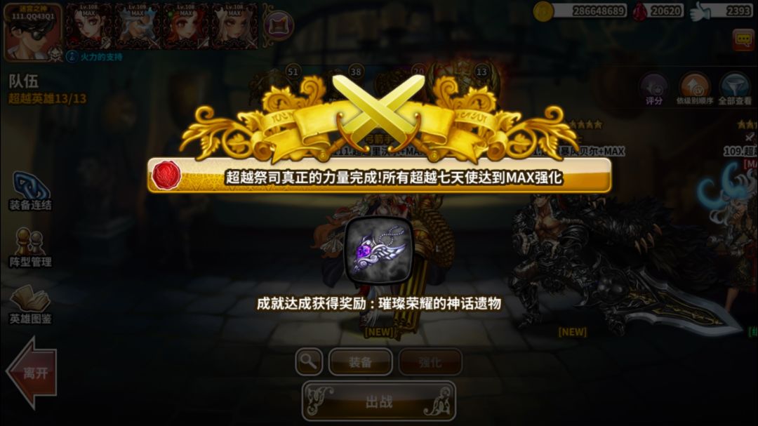 ☛ 强化MAX所有超越天使获得: 璀璨荣耀的神话遗物
