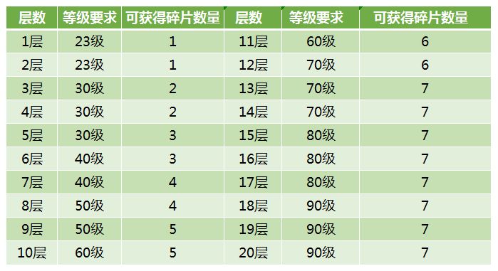 通关前10层可获得30个陨落心炎·子碎片,合成陨落心炎·子火;11-20层一共可获得68个碎片,可以将陨落心炎·子火提升至3阶。