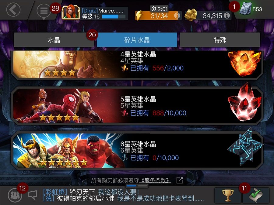 《漫威:超级争霸战》英雄获得其实相当容易,因为游戏的奖励是十分丰厚的。一个高级英雄水晶有高达20%的概率获取三星英雄,高级水晶在游戏前期的获取是可以说是简单到不能再简单了,登录邮箱、加入联盟……各种各样的渠道都能让你迅速集齐一套三星英雄阵容。