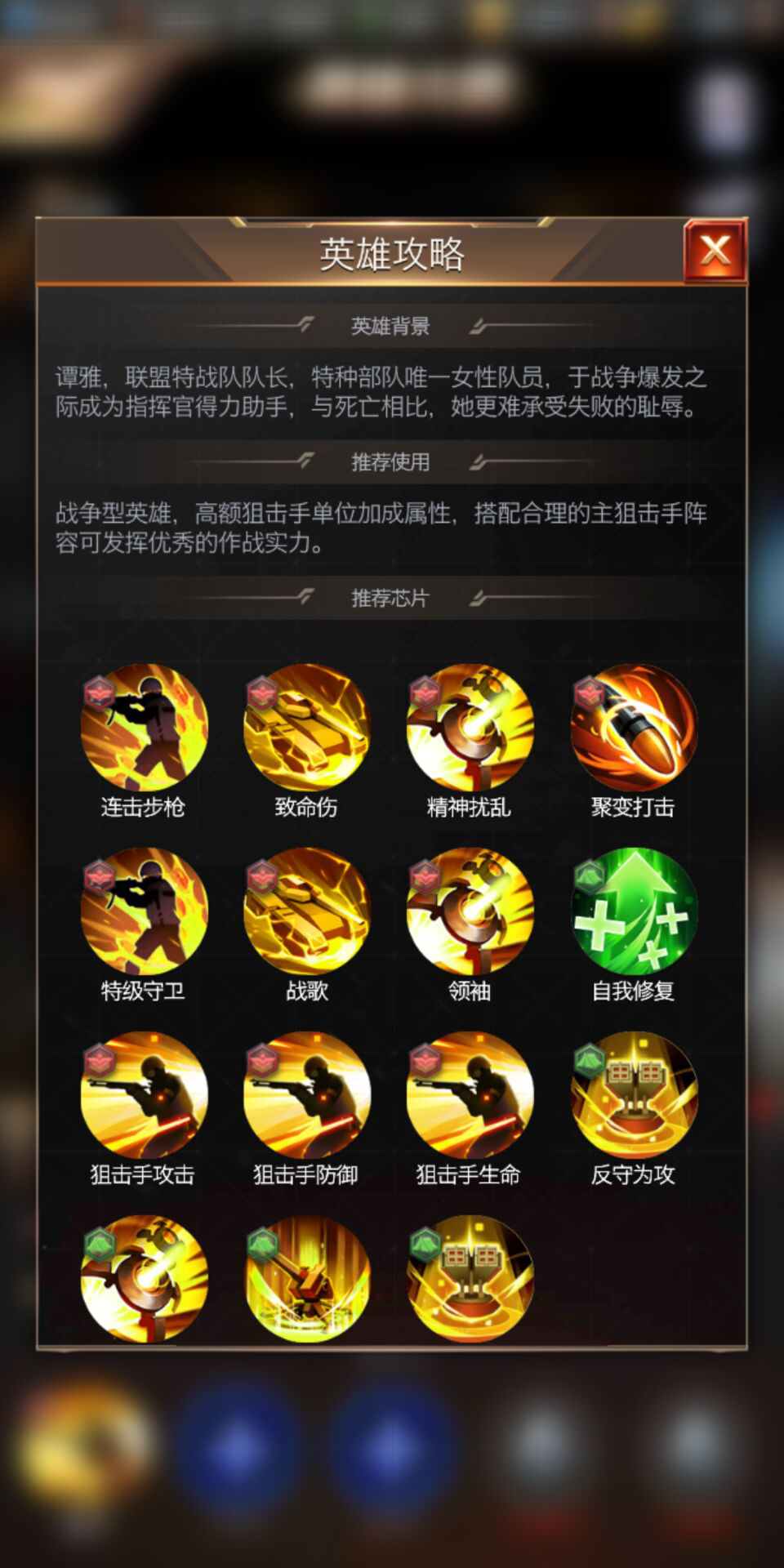 当然有玩家不屑于守城,我这里有相应的攻城搭配,复合血统,聚变打击,精神扰乱。这个的成本比较高,因为都是比较难抽取的技能,但是总体出发,其打击力度会比单兵种强很多,没错,虽然谭雅是狙击手英雄,但是我出征作战却不是狙击手主力,因为狙击手作为进攻方使用少一个技能等于,盲目堆狙击手属性效果并不好。