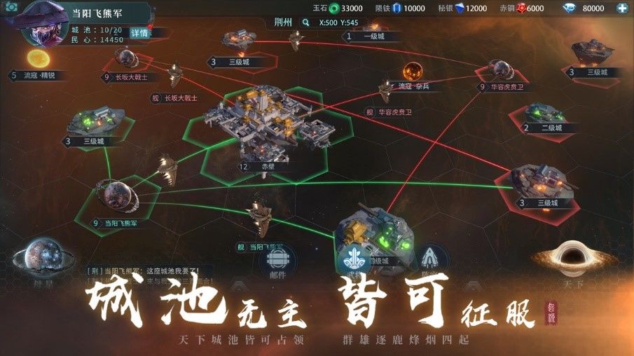 主公将在游戏初期从敌对势力手中夺取一颗行星,并以此为母星,在星球表面建造城池,成为割据一方的诸侯。