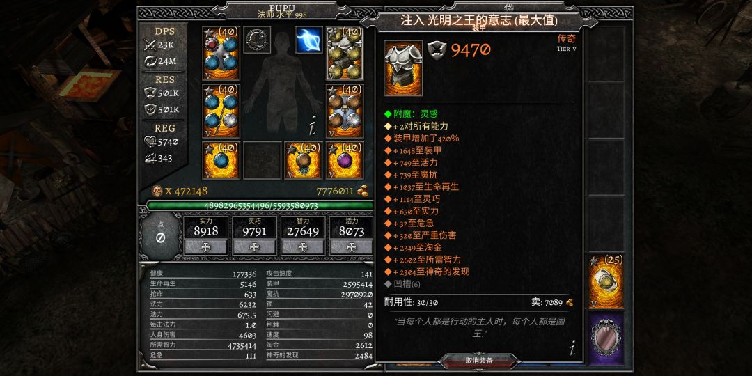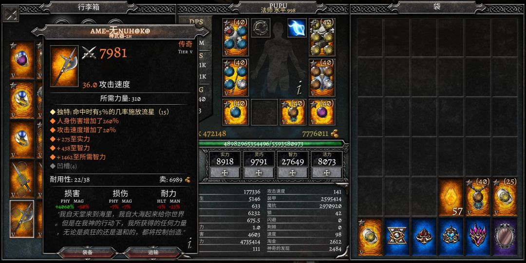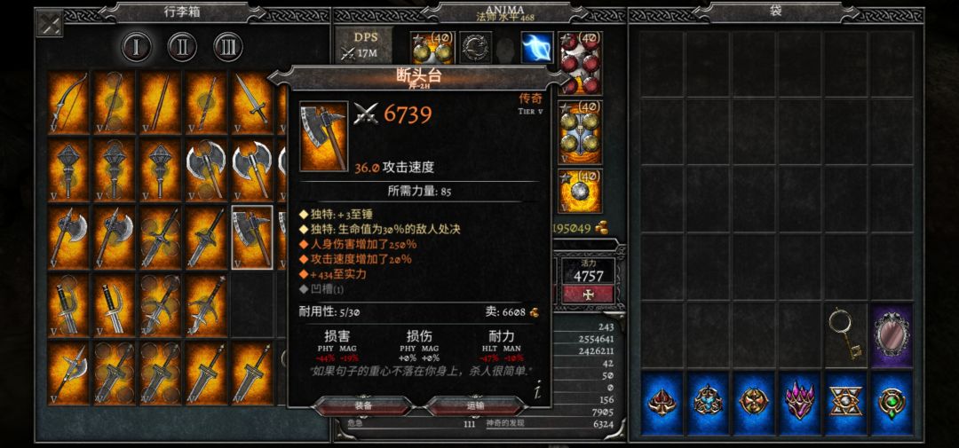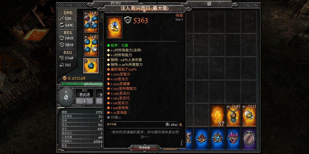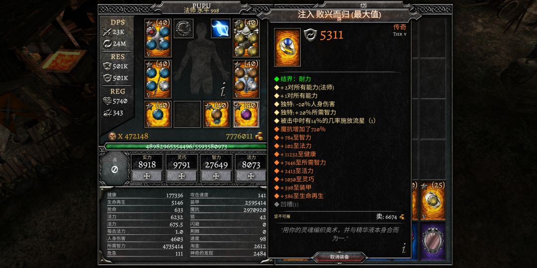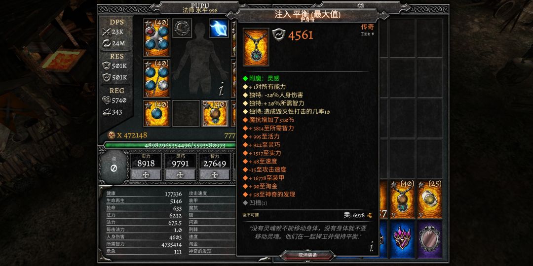 用平衡项链(图下方有)融入败兴戒指是版本最强的法师加成。魔抗对法师来说比较容易堆,所以不用融合强先强化。平衡所需智力极品roll为1800左右,败兴在1300左右。