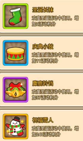 使用圣诞长袜、庆典小鼓、麋鹿铃铛、祝福雪人就可以获得活动积分和活动经验,活动积分可以在商店里兑换奖励!