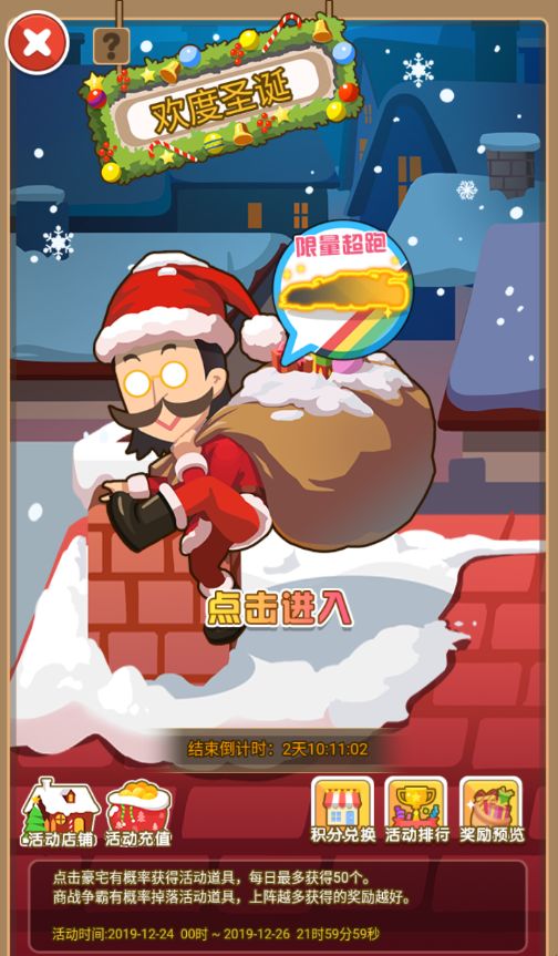 而这些欢度圣诞道具我们可以通过点击豪宅获得,每天最多50个;