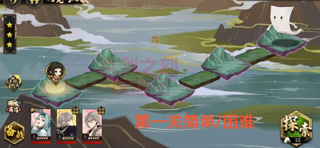 1、活动开启期间,消耗饭团(所有普通关卡消耗6点饭团,困难关卡消耗10点饭团),探索活动关卡,获得石珠,可用于在商店兑换道具。