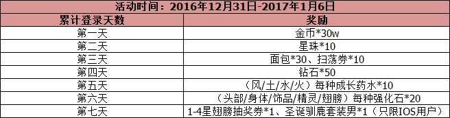 1.由于安卓/IOS圣诞版本更新时间不同,安卓渠道已在冰雪节线上活动中投放圣诞驯鹿套装(男)奖励;故本次累计7日登录奖励赠送的圣诞驯鹿套装(男)只限IOS用户获取,请各位知晓。