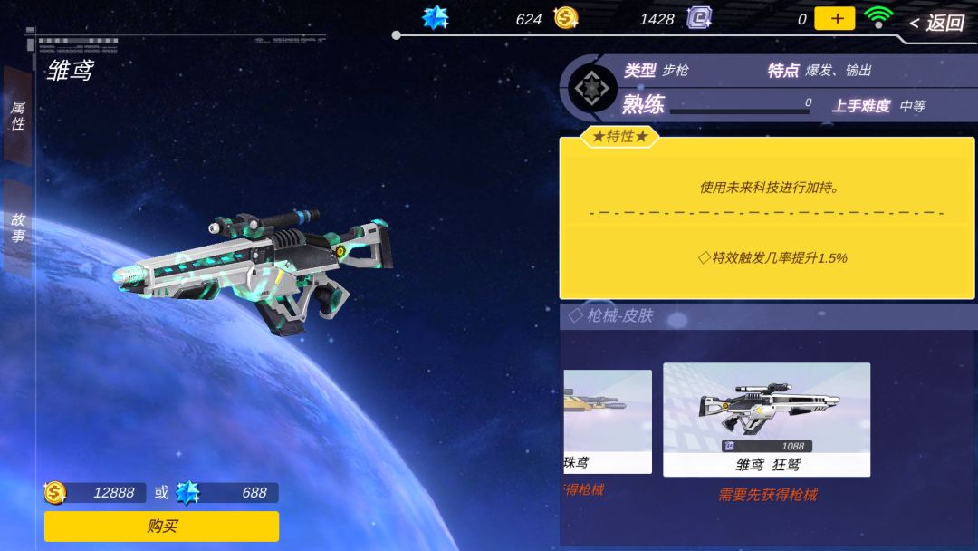雏鸢:雏鸢也称欧皇枪,雏鸢散射较凄惶大,弹夹容量较凄惶小,命中率降低,操作难度略高于凄惶,还需要考验人品和脸白程度才能打出爆炸伤害。