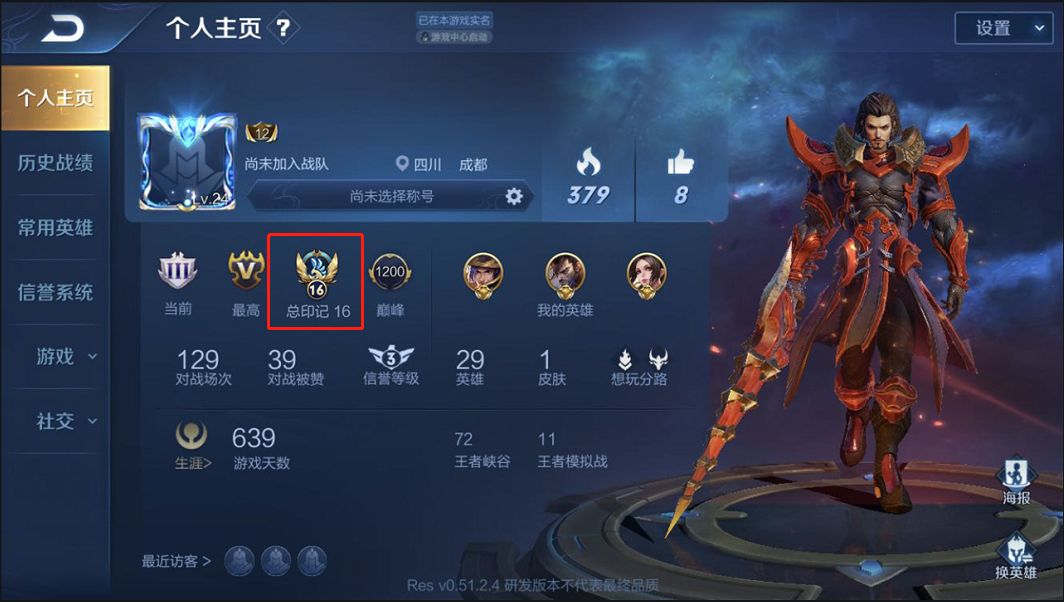 通过个人主页的王者印记图标入口进入到专属的印记展示界面
