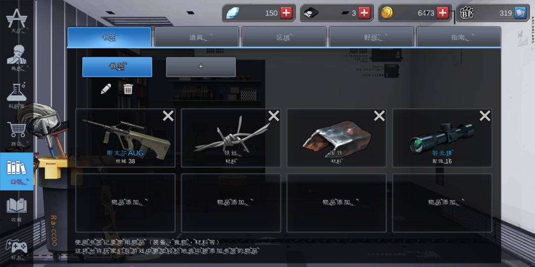 工厂:激光笔合Aug,望远镜+激光笔合狙击镜,找4个铁丝,如果海滩没摸到在这边摸
