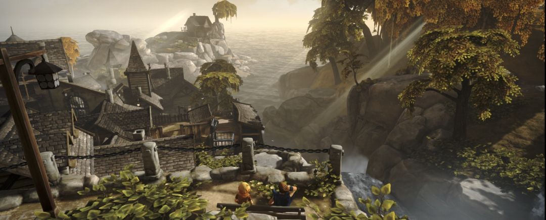 在这里,你能充分体会到在移动端,也能欣赏错落的山群和涓涓的溪流相互应和下丰富多彩的世界,游戏从里到外都没有任何花哨的点,只有朴实的一场旅行,以及一场朴实的旅行带出来的更加朴实的亲情。一路走下来玩家能感觉到各种有趣的谜题,遇上形形色色的人物和故事。哥哥是一个五音不全但却富有责任心,勇敢坚强,而弟弟是一个调皮捣蛋,游戏天地,怕水,同时也细心浪漫的人。两个人性格互补,能摩擦出不少的故事。
