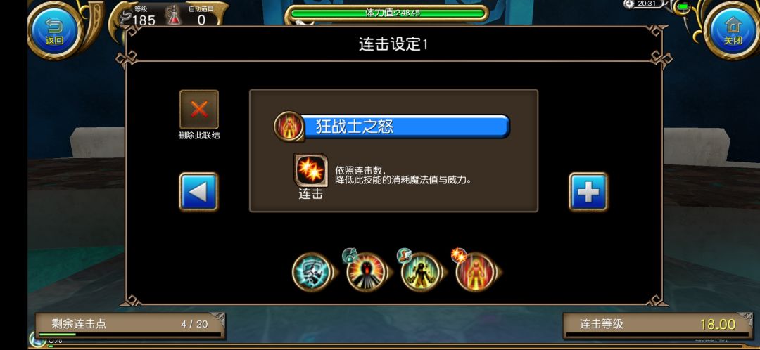 连击点:当你打完一整套连击的时候可获得连击点经验值,连击中的技能(非起手技能)蓝耗越高 连击点经验越高,消耗的连击点越多,此连击的经验获得值也多