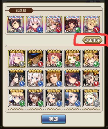 上阵队伍位置就是上阵的角色了,在进入战斗之后的角色左右顺序与这里显示的顺序一致。在好友页面看到的角色队伍就是这里的队伍。注意,在选择上阵角色页面,是有一个排序按钮的。当满级角色多了之后,排序是很方便的一个功能。