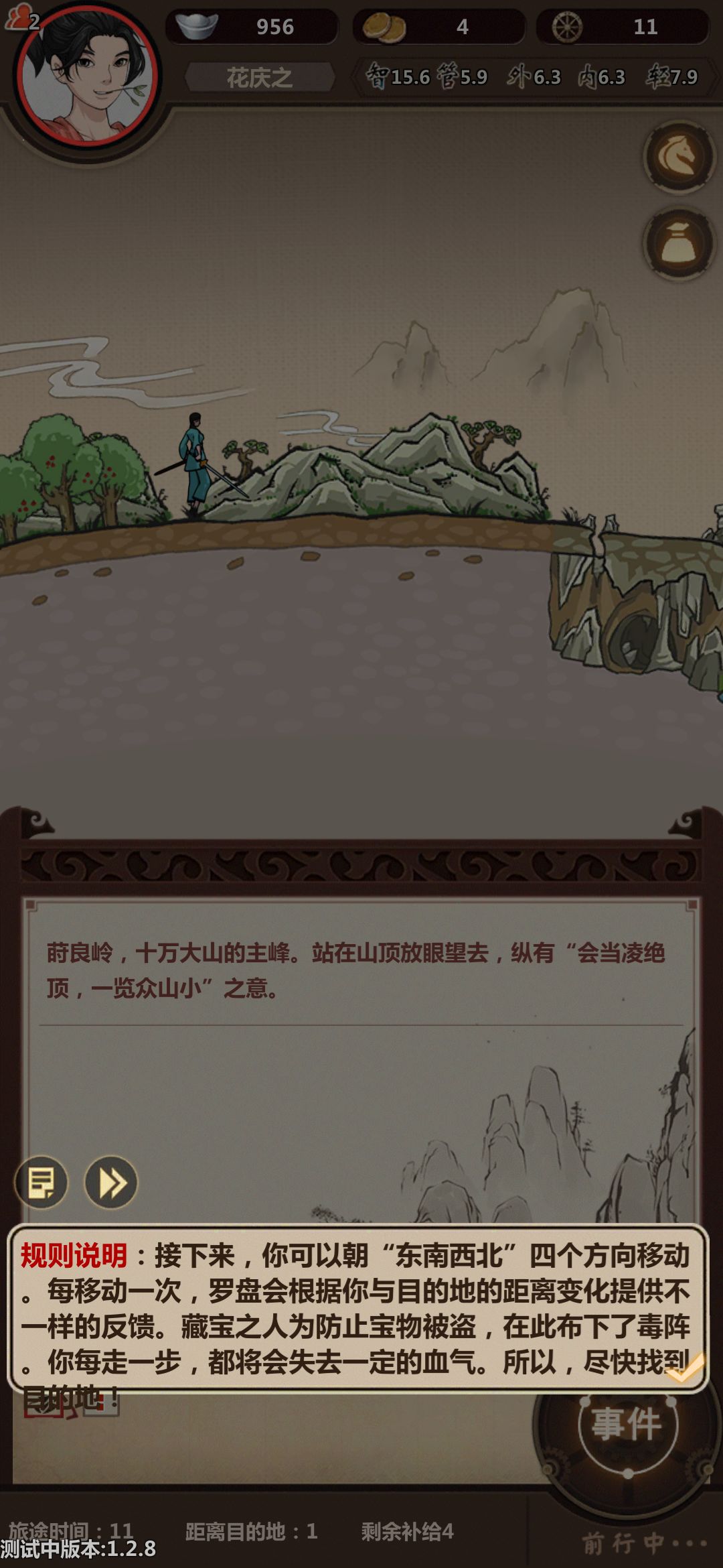 我们带上我们书(其他几样东西也带着!),进入十万大山看下方的远行地图上有没有出现一个钱袋💰的地方!这样的地方大几率是药材商人!人参就是在这里买的!