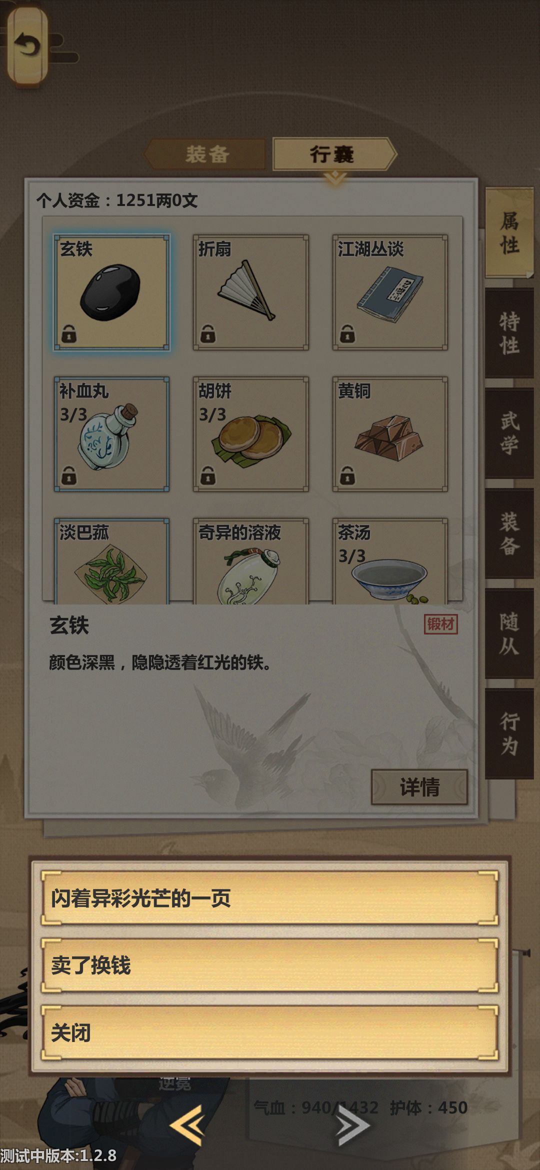 —喧闹的寺庙(前置事件集市的饼店)选项随便选(我们得到一个蓝色的武功心法)(新手低传承的推荐直接学了用上)(高传承的带回门派在学吧!)
