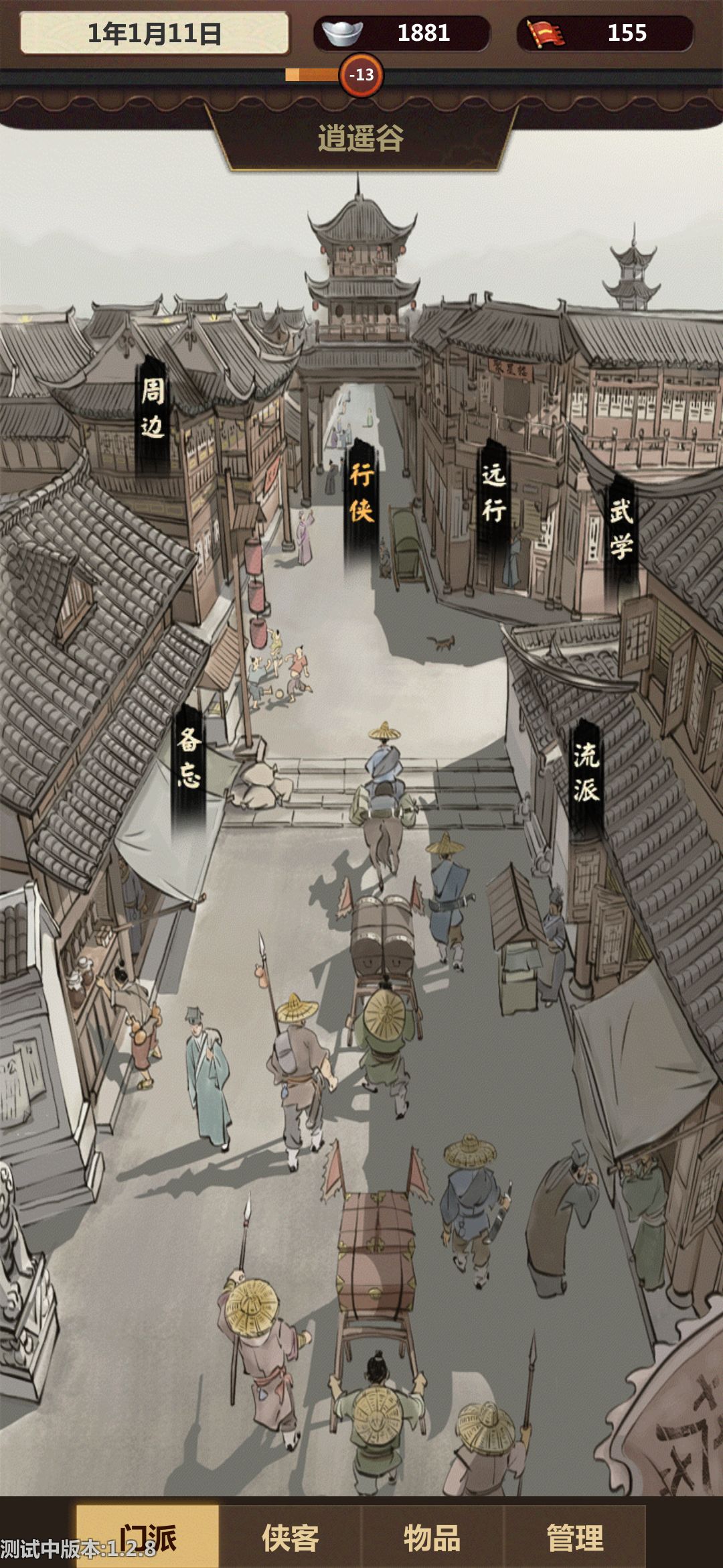按照→远行→门派(各种事务)→行侠的顺序操作就可以了!!