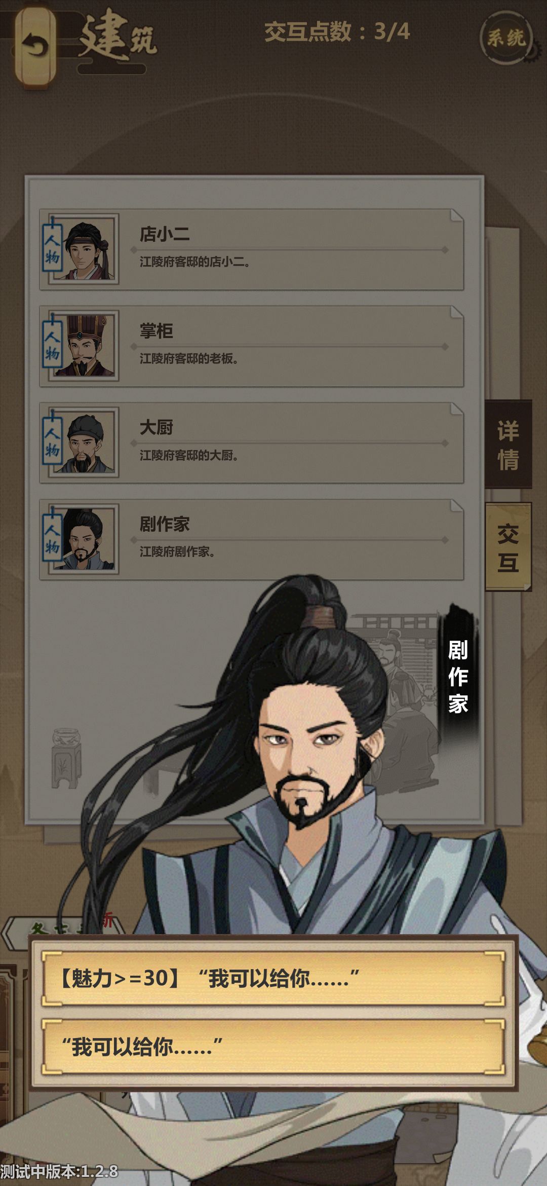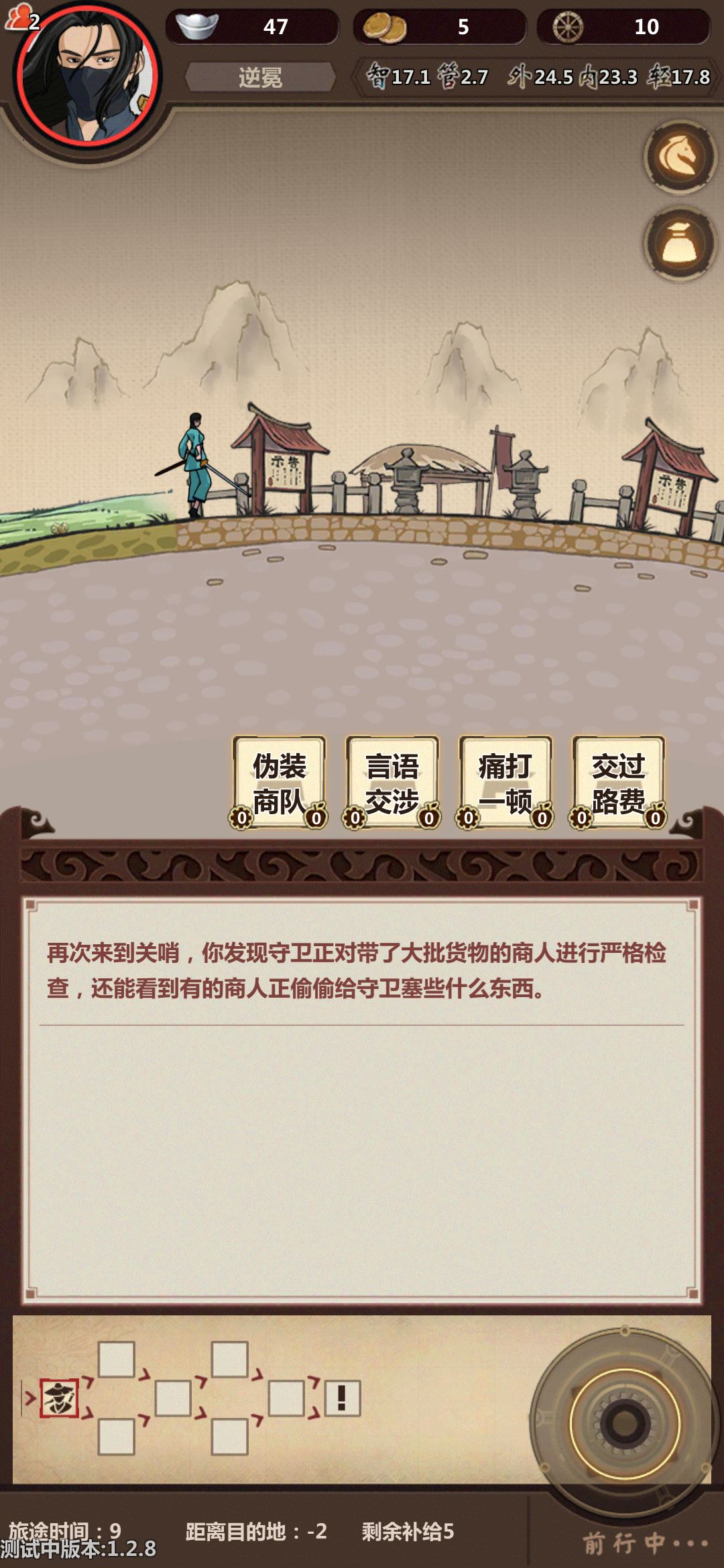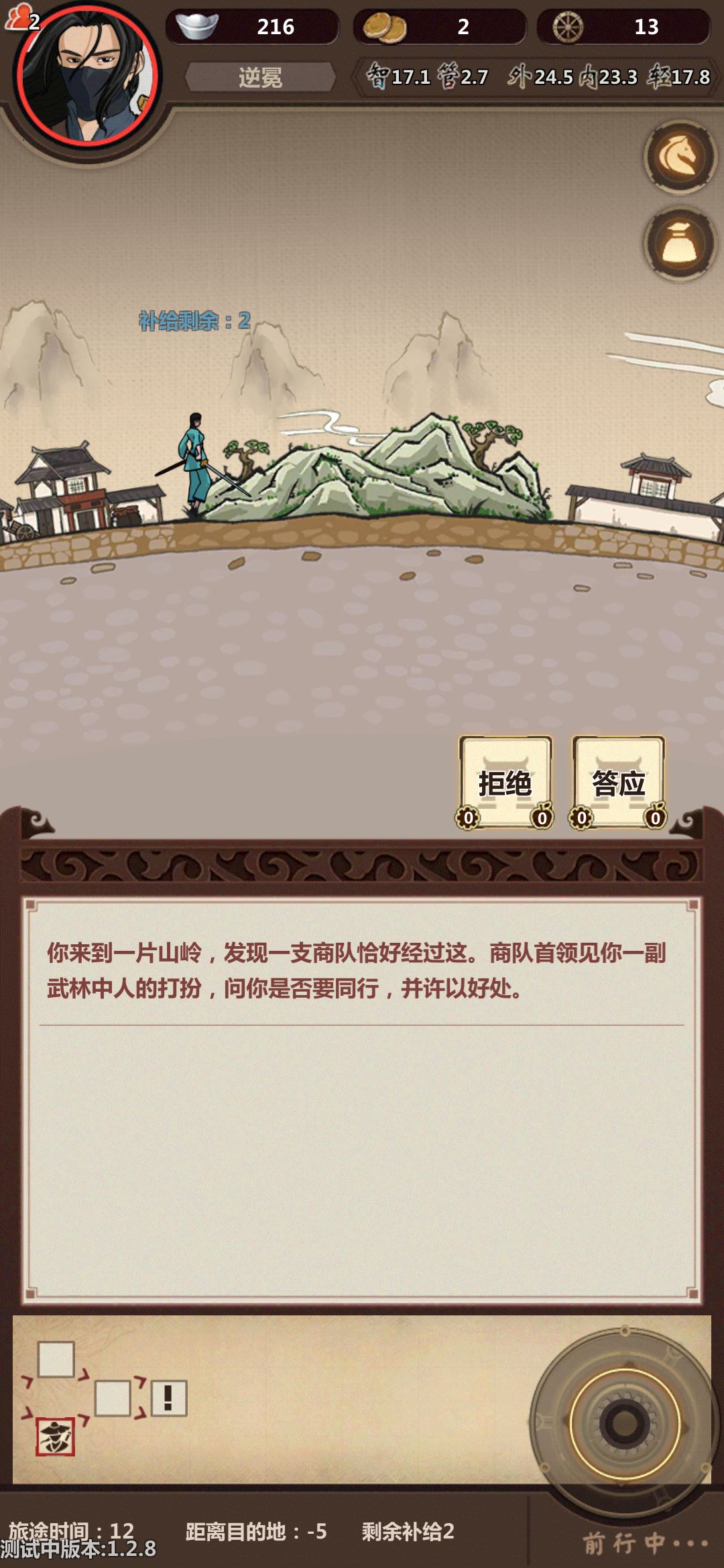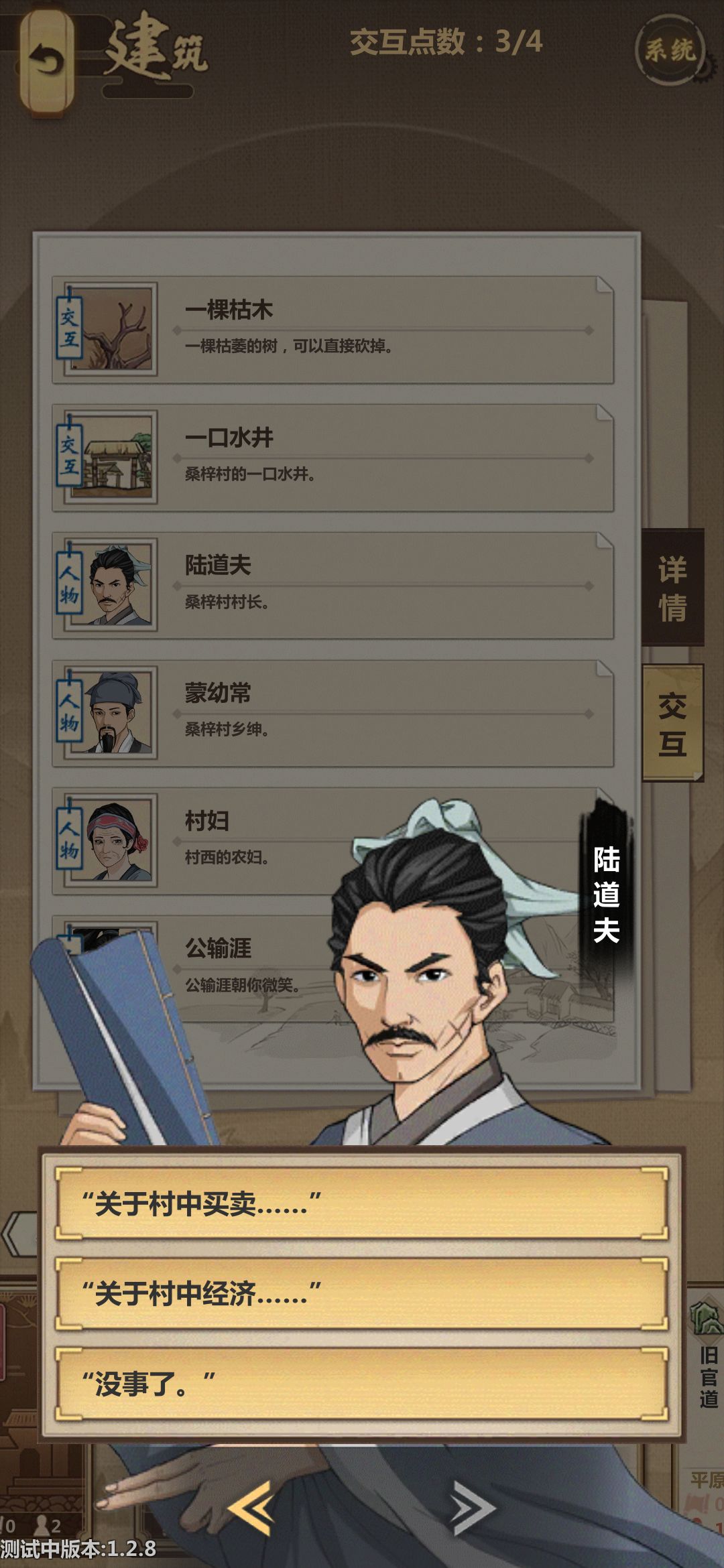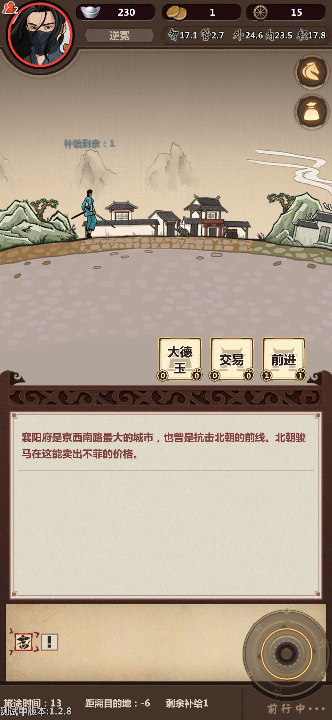 我们走上路!!!来到了一个客栈!选择交易!交易完成后触发一个交易后续点击后,会触发这三个选项