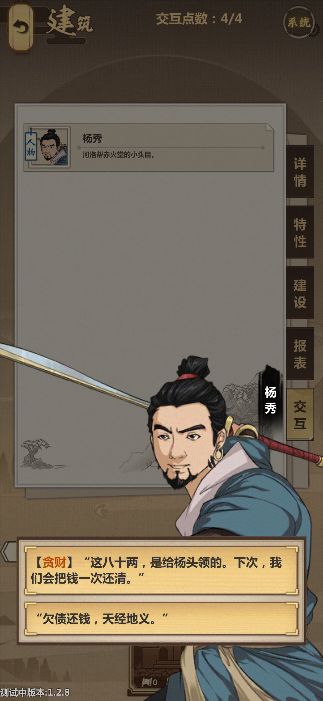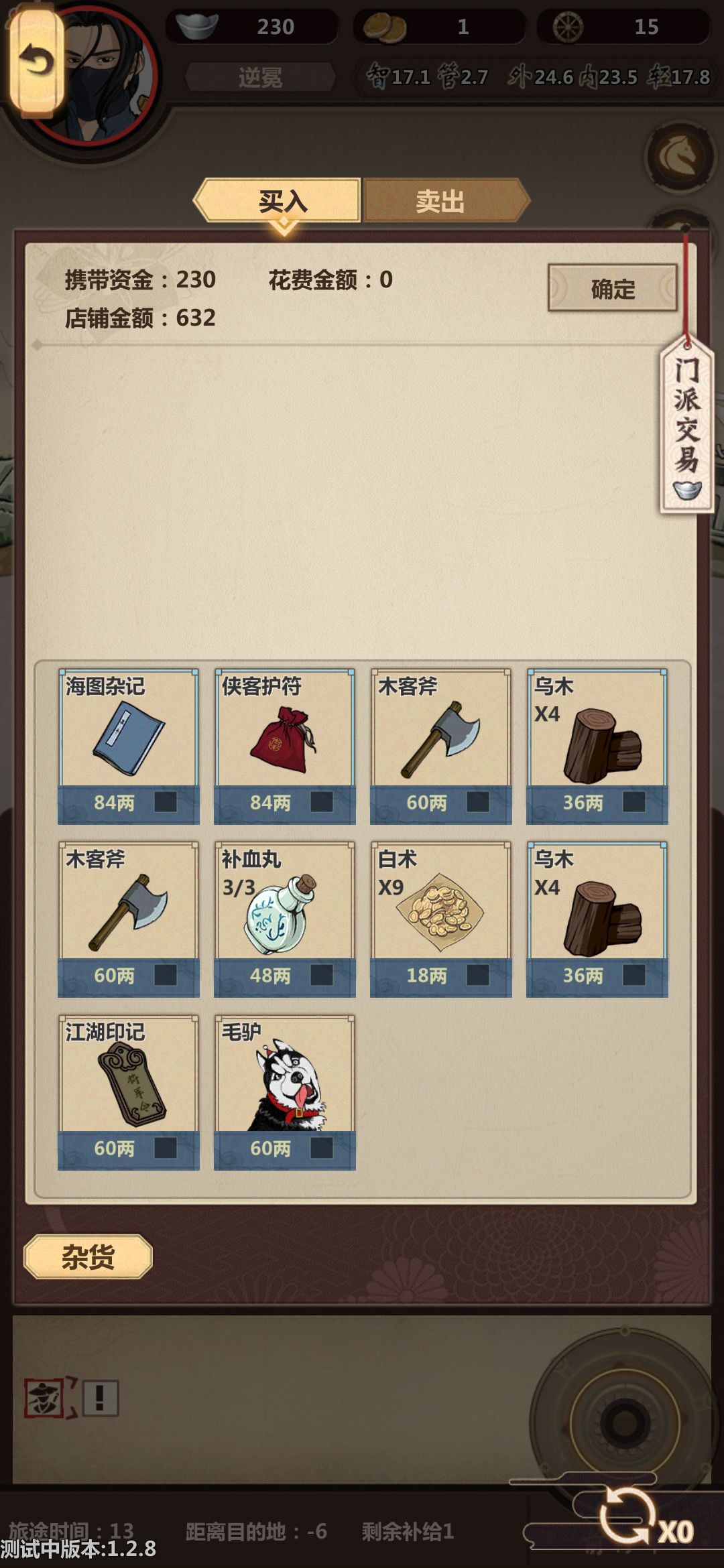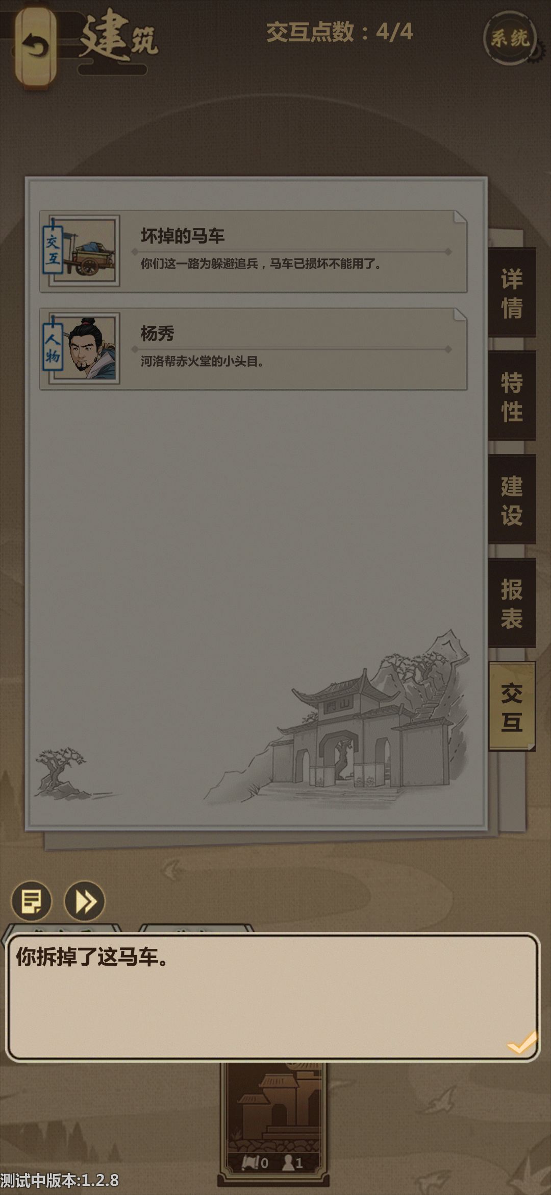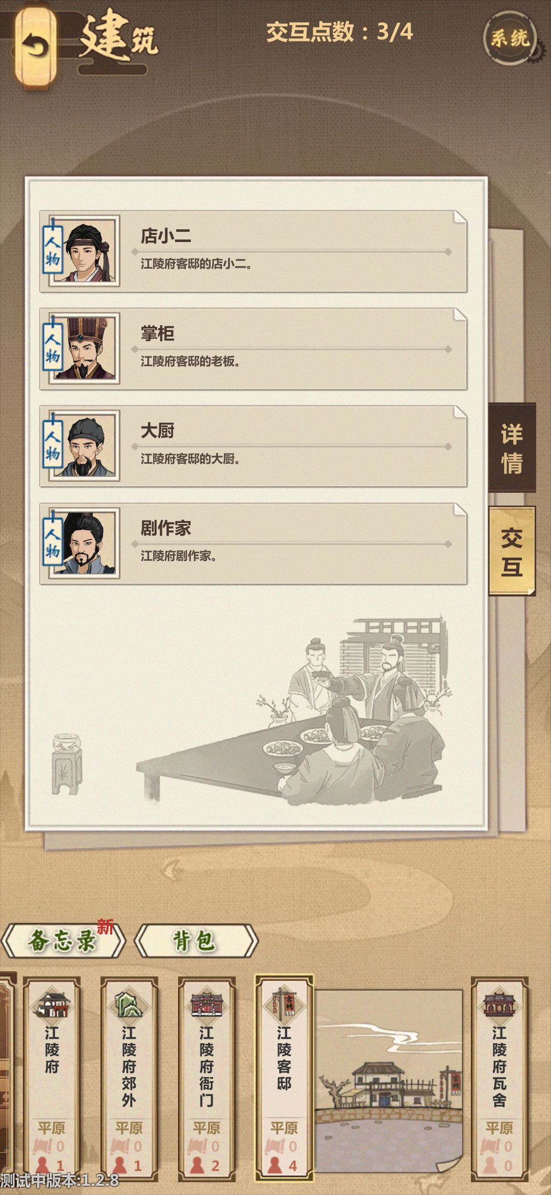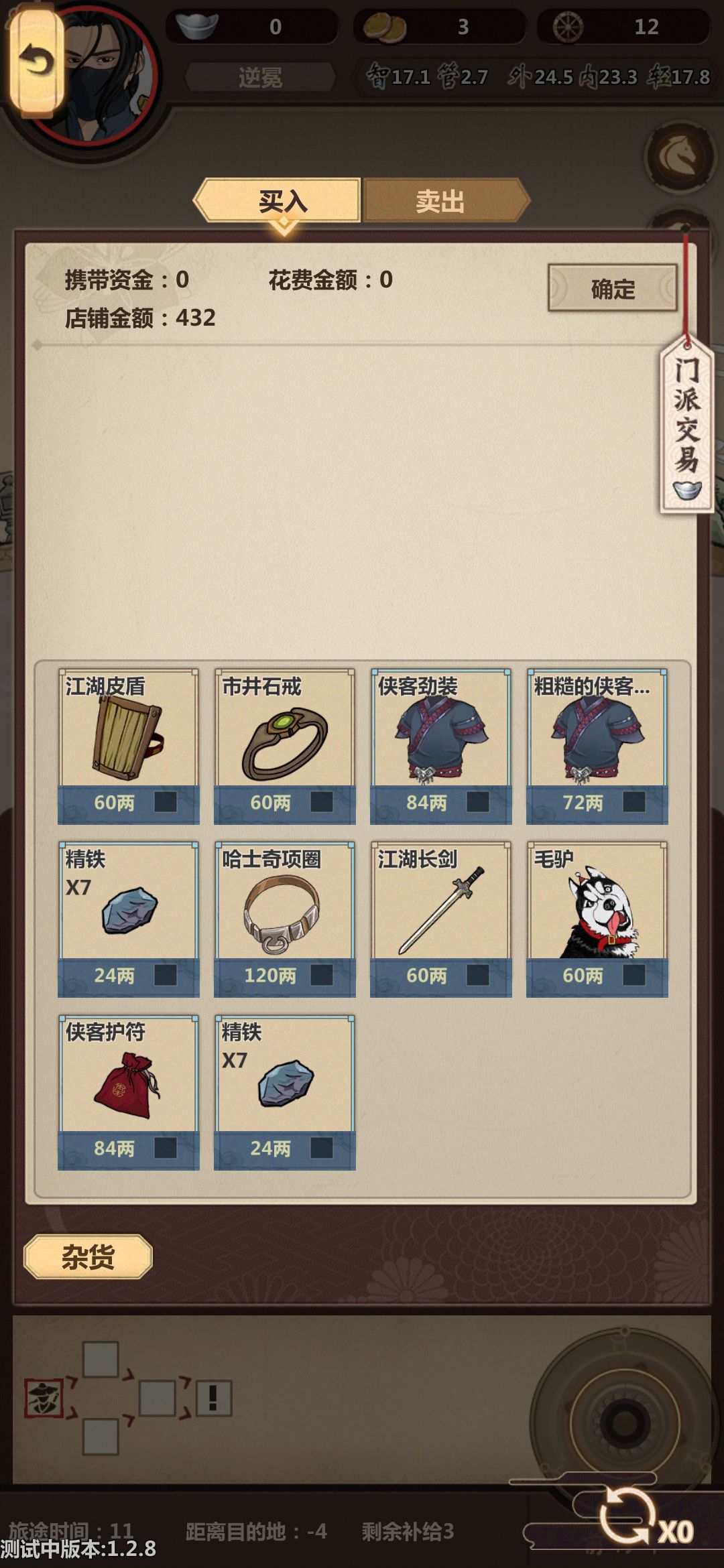 我们走上路!!!来到了一个客栈!选择交易!交易完成后触发一个交易后续点击后,会触发这三个选项