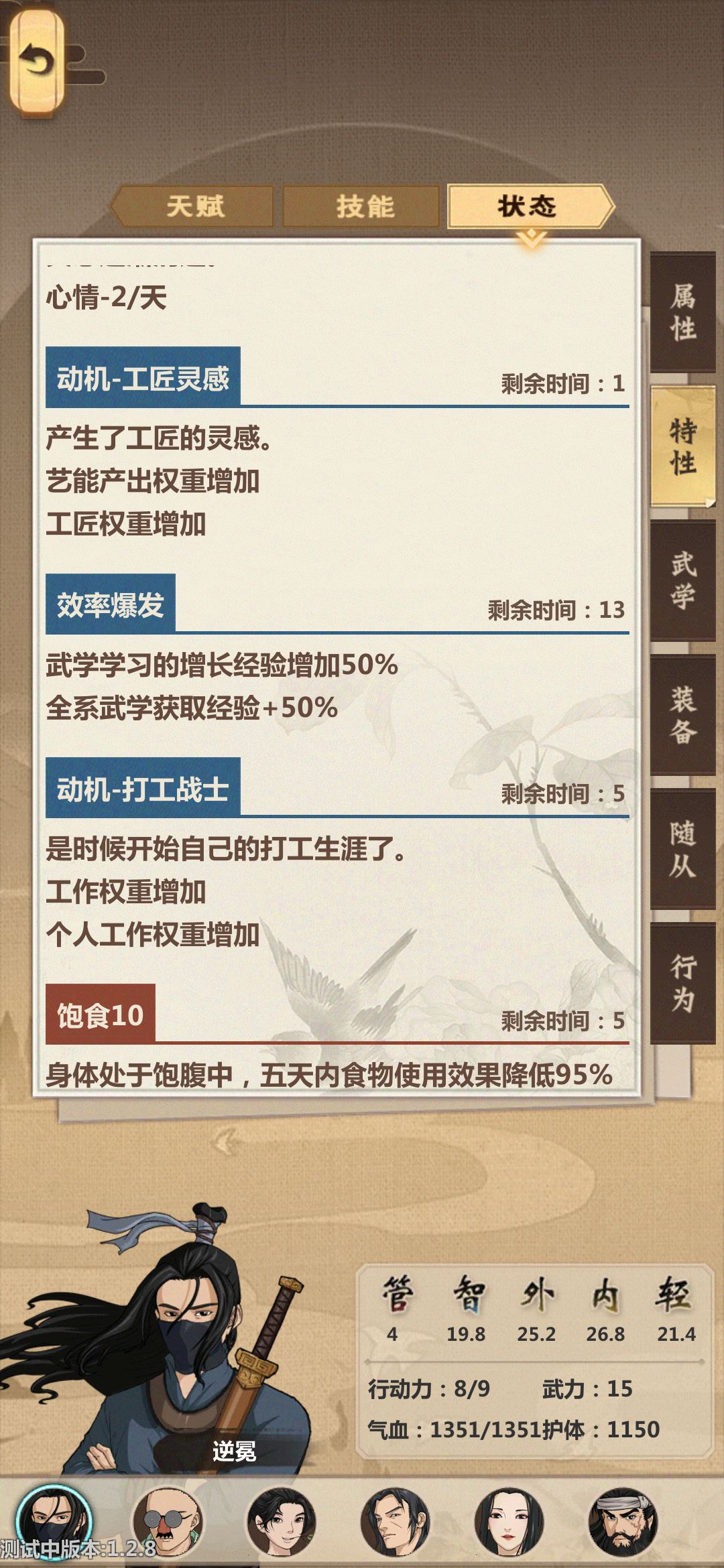 这里说一下加心情有什么用!(当你人物角色心情到达100的时候,我们身上会出现buff下图)主要是为了效率爆发这个buff!
