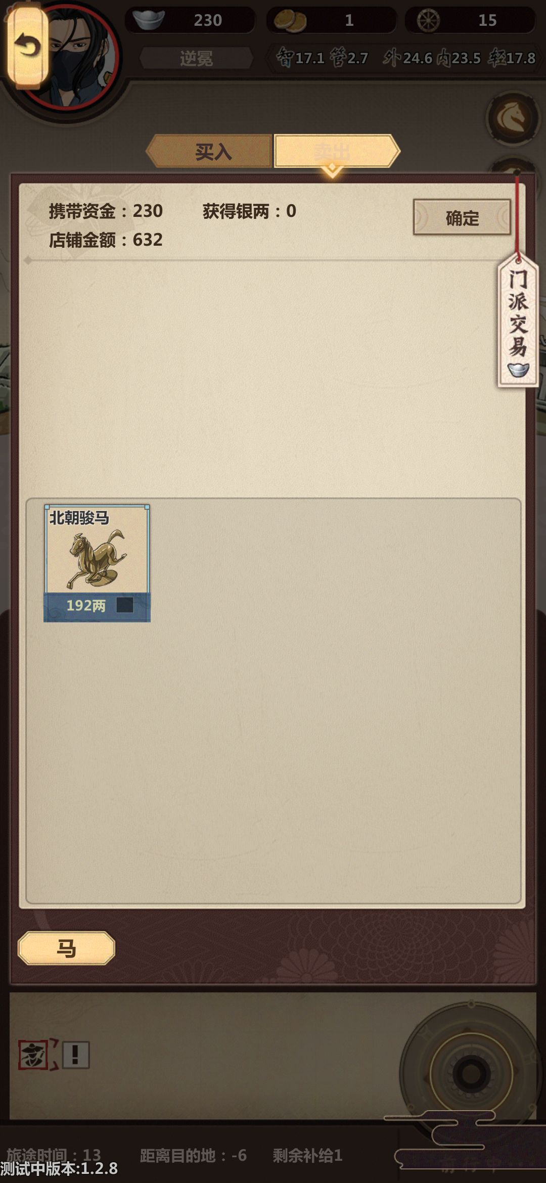回到门派之后!老样子继续去南北通商做马匹贩子!