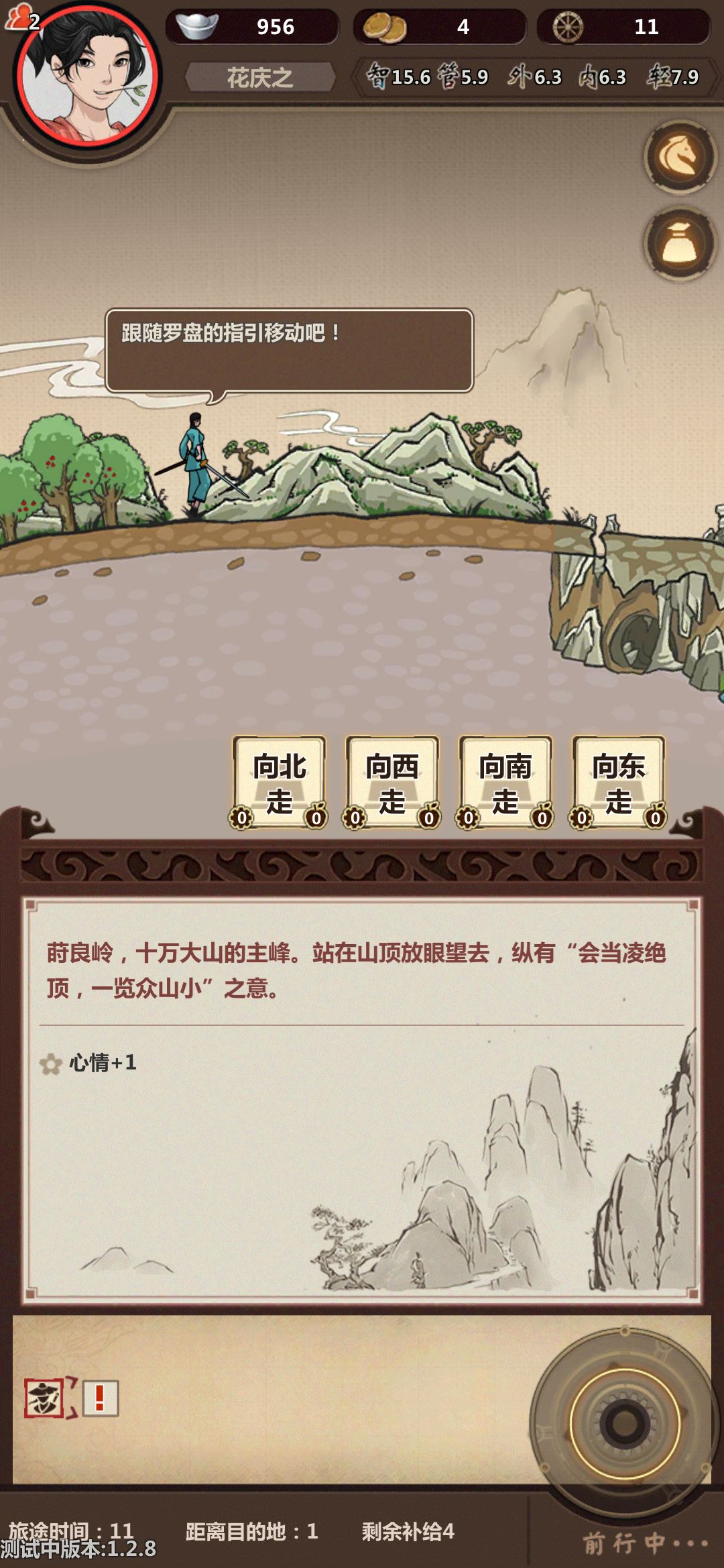 ————————————————————————————我们回到门派!先去还是老样子先远行!不过这一次我们解锁了十万大山!!我们先去这里!!(要不要换人你们自己看着办!处理好行动力问题就行!)