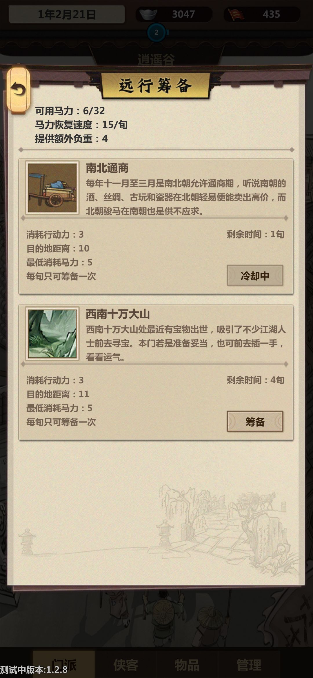 (除非是南北通商结束前的21号!我们要去黑市买马匹去卖!不然就一直按照上面的顺序来!直到远行事件结束!!)(还有门派里面的特殊事件!)