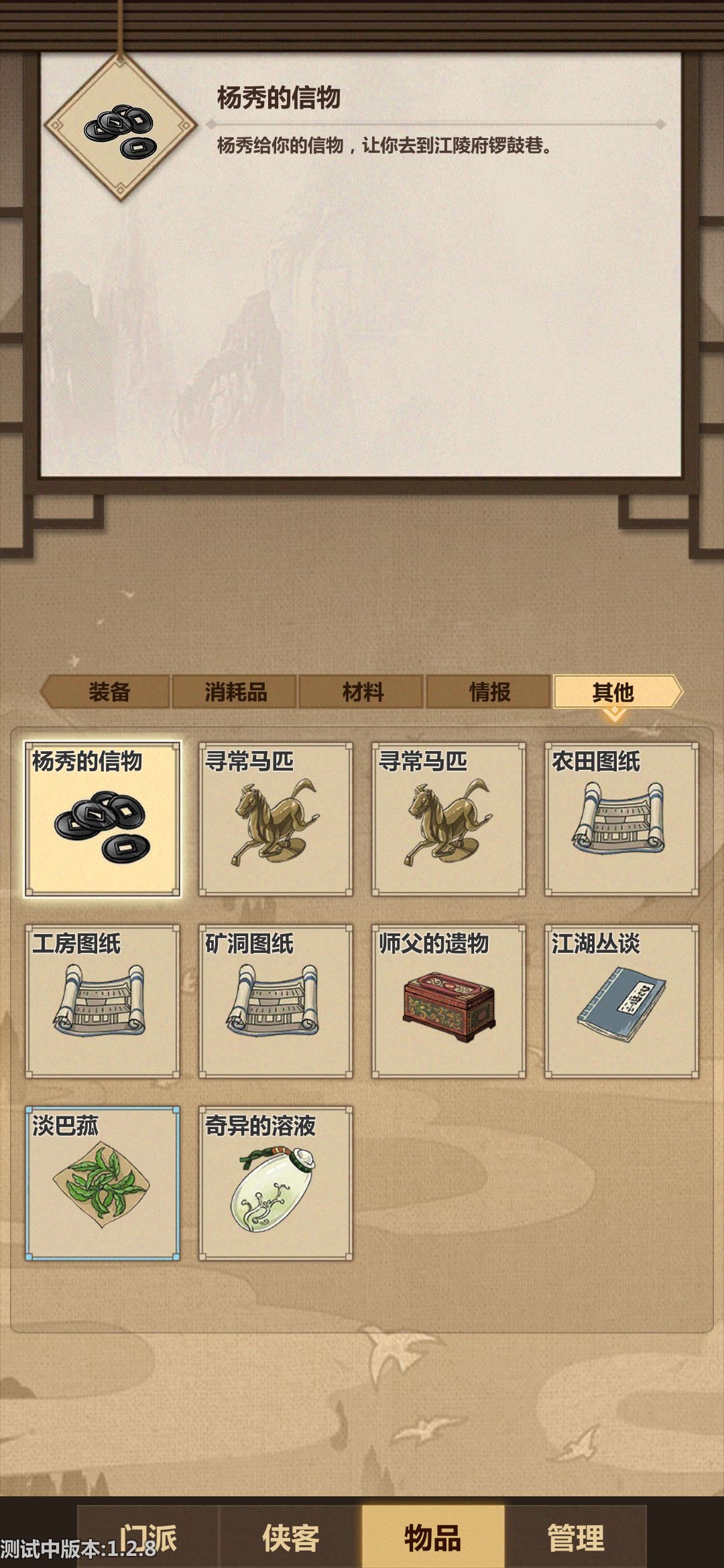 在去公输涯哪里打造出一个铁镐!(给丁阳装上然后扔到矿洞的差事去!)(矿洞的挖矿收益跟外功有关,所以给丁阳装上加外功的装备)(矿洞的管事我们暂时担任!)(麦田的话就是锄头!当然也是外功!)(都是力气活!)