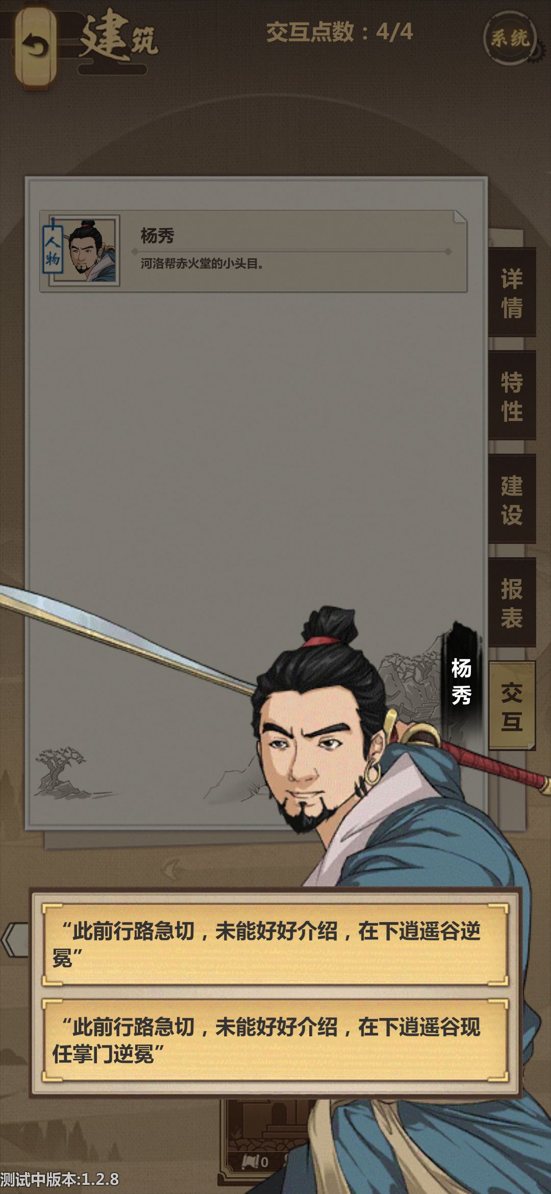 建设门派!(开出金矿正面特性)(麦田则是开出可以种出药材)(麦田我没有怎么玩过!大家去收一下帖子)修复讲武堂!(管事选个高智慧的)用掉互交点!存档!
