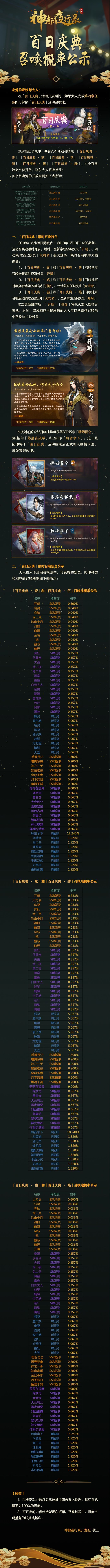 【概率公示】百日庆典召唤概率公示