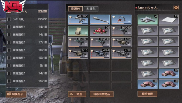 选择物资管理可以很方便的看到庄园的柜子存放的物资情况。