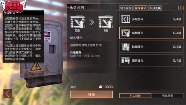 另外地下金库还有提供限时服务的选项,这个每日限时强化选项是会扣去一定的安保积分来换取的。