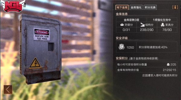 点击进入后会看见金库信息,评级,安保积分等情况。