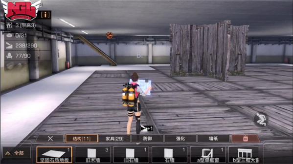 在这里,可以建造地板以及建筑物,摆放柜子家具,防御装置