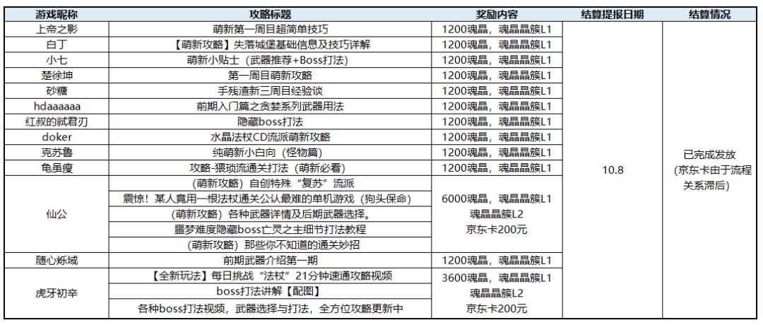 每篇官方认证攻略将向作者颁发1200魂晶