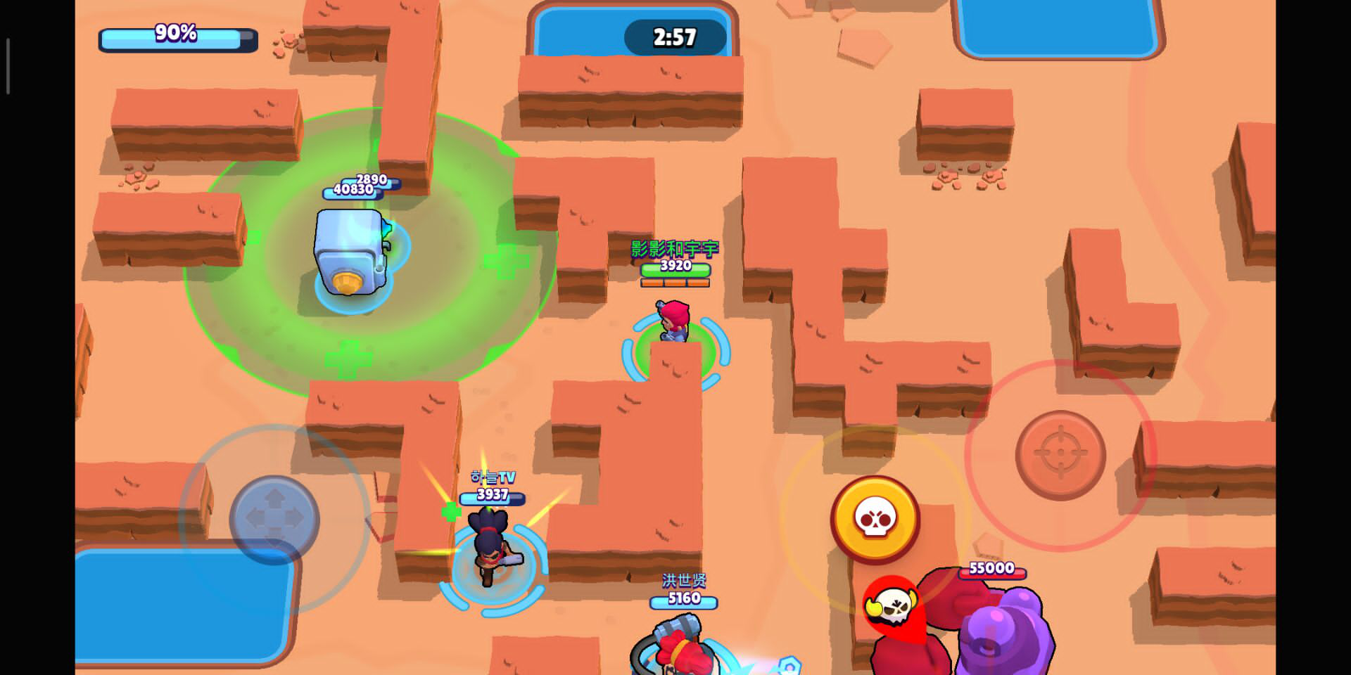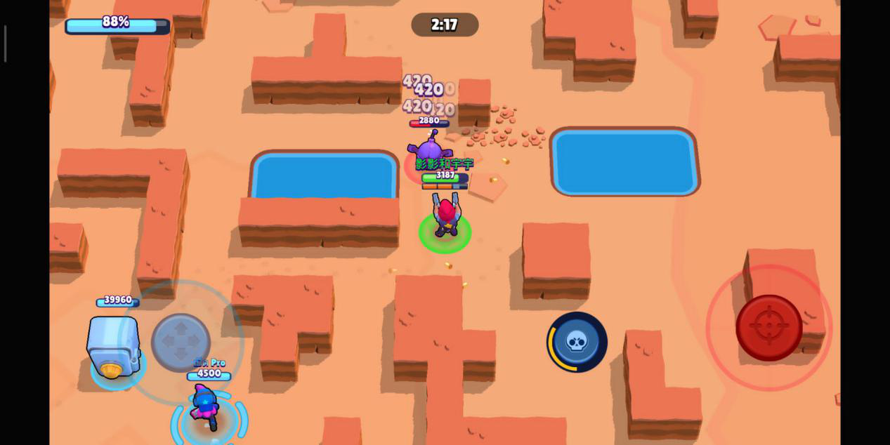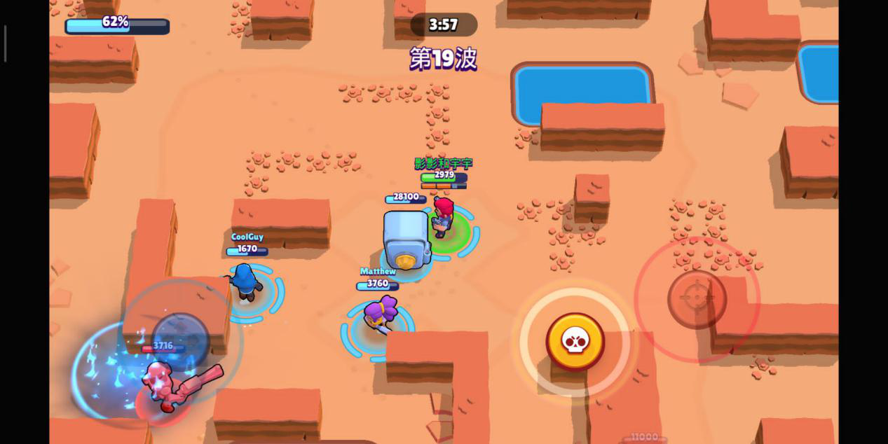 柯尔特或杰西:柯尔特的输出能力在荒野英雄中是数一数二的,和他攻击类似的瑞科由于在生命值上不占优势,所以选用柯尔特是最佳选择。而杰西胜在普攻可以弹射多个单位,并且由于面对的是电脑小兵,只需要保持默认攻击,就能保证普攻命中,大招炮台配合8比特的放大器,能当半个英雄来使。