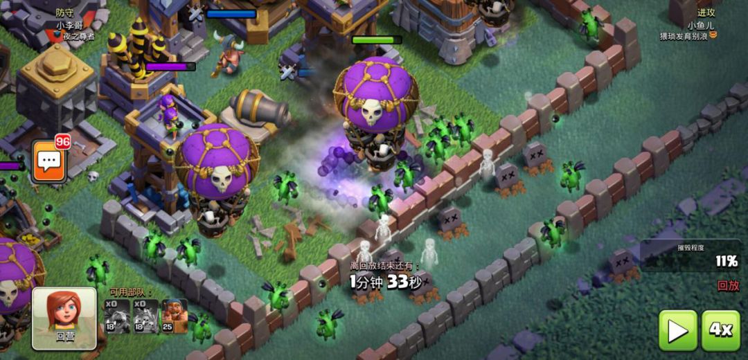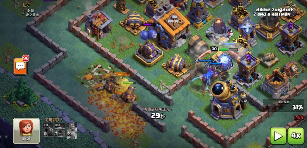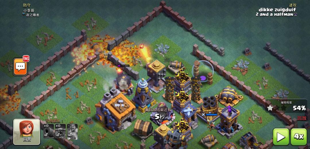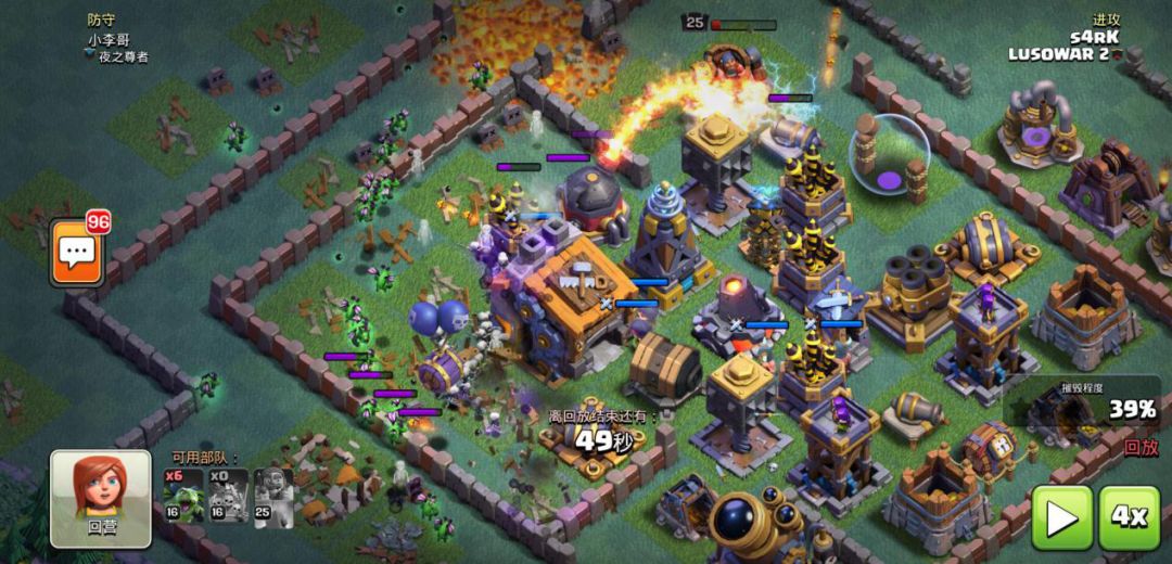 2.防守上,城墙很多位置都保持全包围,对手只有攻克外部城墙后才会进入内部。不过在上下角落位置,我们会预留入口做拉扯点,一旦对手在周围下兵,那么会直接被吸引进入内部,这样内部的撼地巨石会早早等待它,打出高伤害!