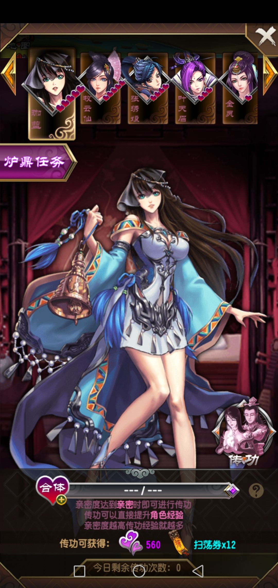 还有炉鼎,我个人觉得珈蓝好,因为给扫荡卷,这东西是真的缺,所以她的炉鼎任务优先完成,至于其它炉鼎,看个人爱好吧。