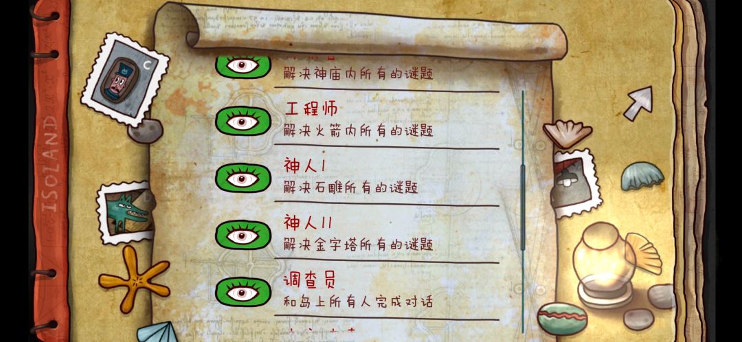 第一次二周目完成后发现只剩下调查员成就没完成,所以到处搜攻略看有没有遗漏,但是确实所有人物都对话过了,包括狮子人、大头人、头套人、红领巾男孩和小狗,然后想起来小狗是在一周目里对话的,二周目赶着做就没点……不会因为这个吧。于是回到主页开始新游戏,二刷二周目,熟练的我都心疼自己。和一刷流程一样,有些不必要的干脆没有做反正能和人物对话就行,然后对话到大头人的时候成就就完成了!所以成就党二周目的时候不要偷懒,老老实实把所有人对话一遍吧。
