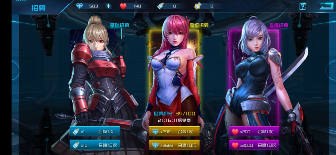总共4个S,剧情送了一个,友情点抽了一个,保底了一个。高级招募134发,只抽了一个S。