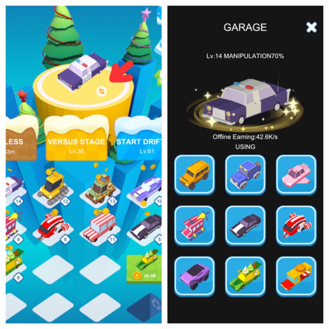 新合成的车即当前漂移用的车辆,如果还想使用之前的车点击这里进入车库切换哦。