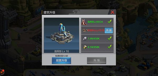 指挥部等级取决于指挥官本身等级。等级是作为影响实力和发展的一个大头,也是打好基础的第一步!指挥官可以通过不停刷任务来达到升级的效果,如果前期指挥官等级升级速度不够的话,也可以通过接支线任务,达到快速升级的效果。