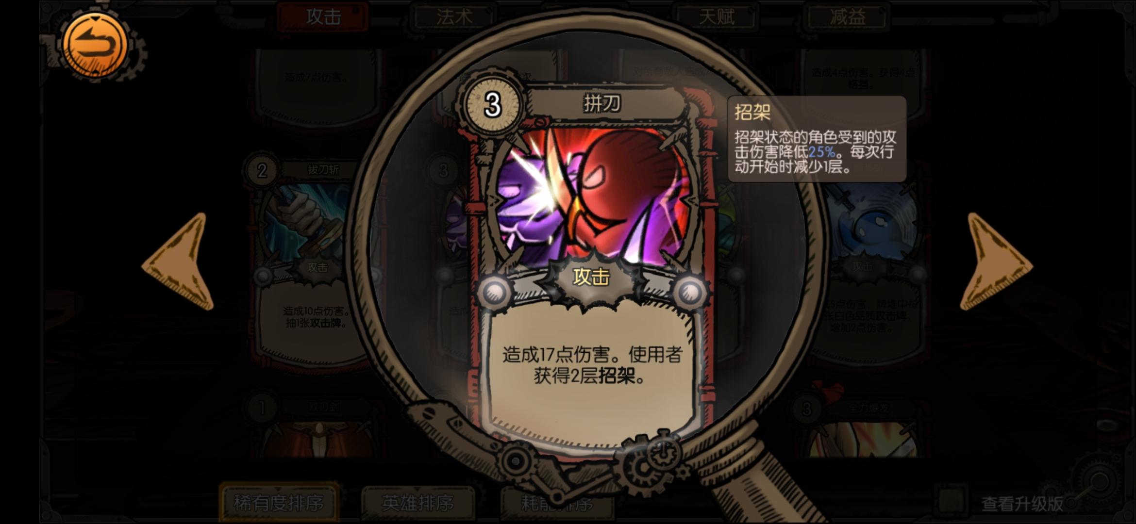 招架:带有这个状态的单位在持续回合内受到的所有伤害将减少25%(例如敌人对你发动了100*3的物理攻击.那么你实际会受到75*3的物理伤害)