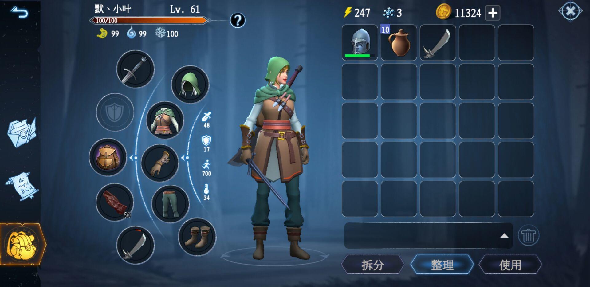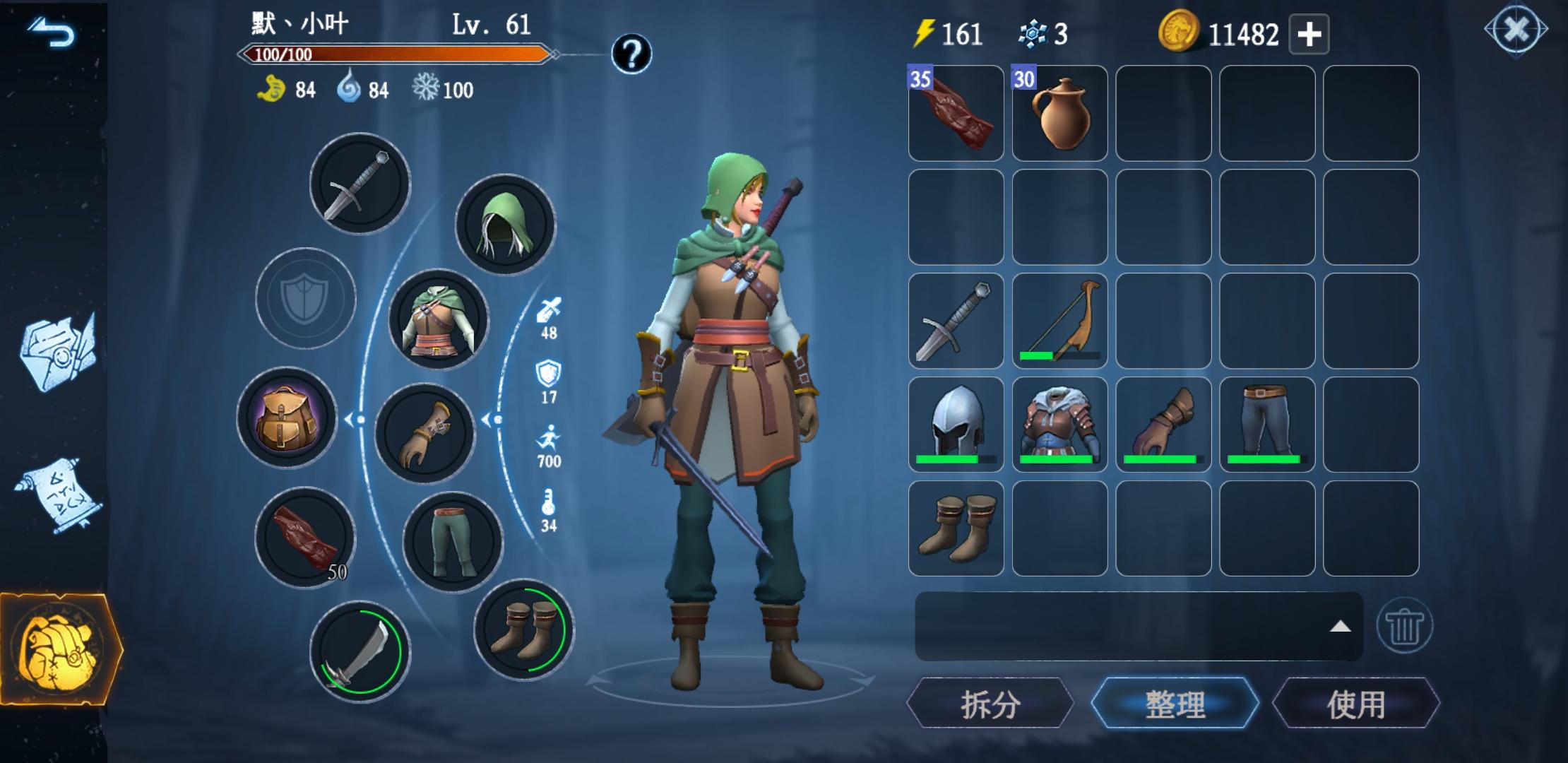 这是清图配备,建议直冲boss杀了后开大宝箱拿了就出来把东西存在门口,然后打两边巨型兵(细绳的主要来源)。如果要布则多开包裹,不要就直接杀怪拿绳走人,一两根金线木不值钱。