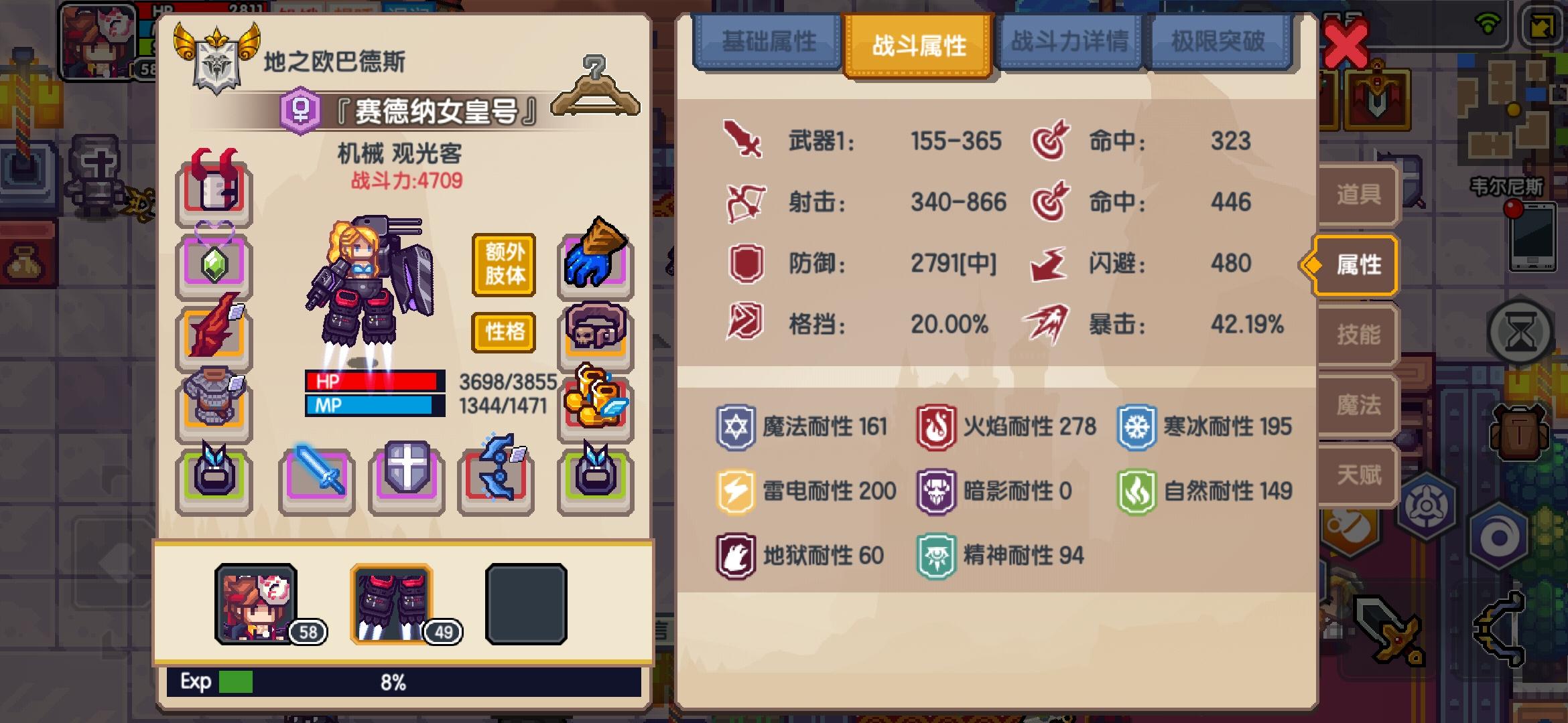 六个主属性随等级提高,每个最多提升57点