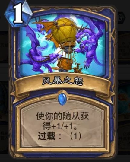 上古时期快攻萨满就必带的卡,充当卡组的恐怖打手。1费13的身材前期鲜有职业能处理,配合过载打出滚雪球的优势,对手不及时处理这个会面临崩盘