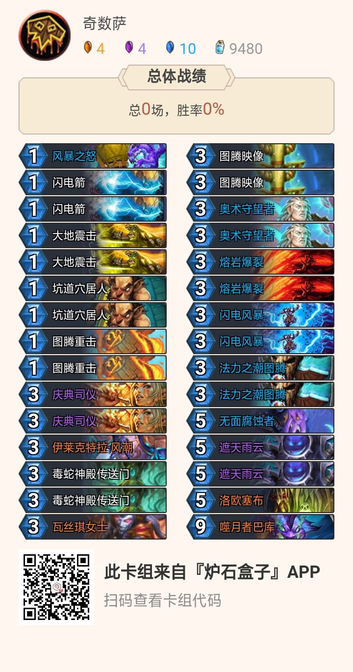 对于热爱萨满的玩家以及奇数卡组的玩家大可以试试这套既好玩又不失强度的奇数萨,最后祝愿大家上分愉快!