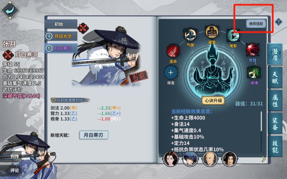 點擊俠客對應的潛質介面“推薦搭配”進入