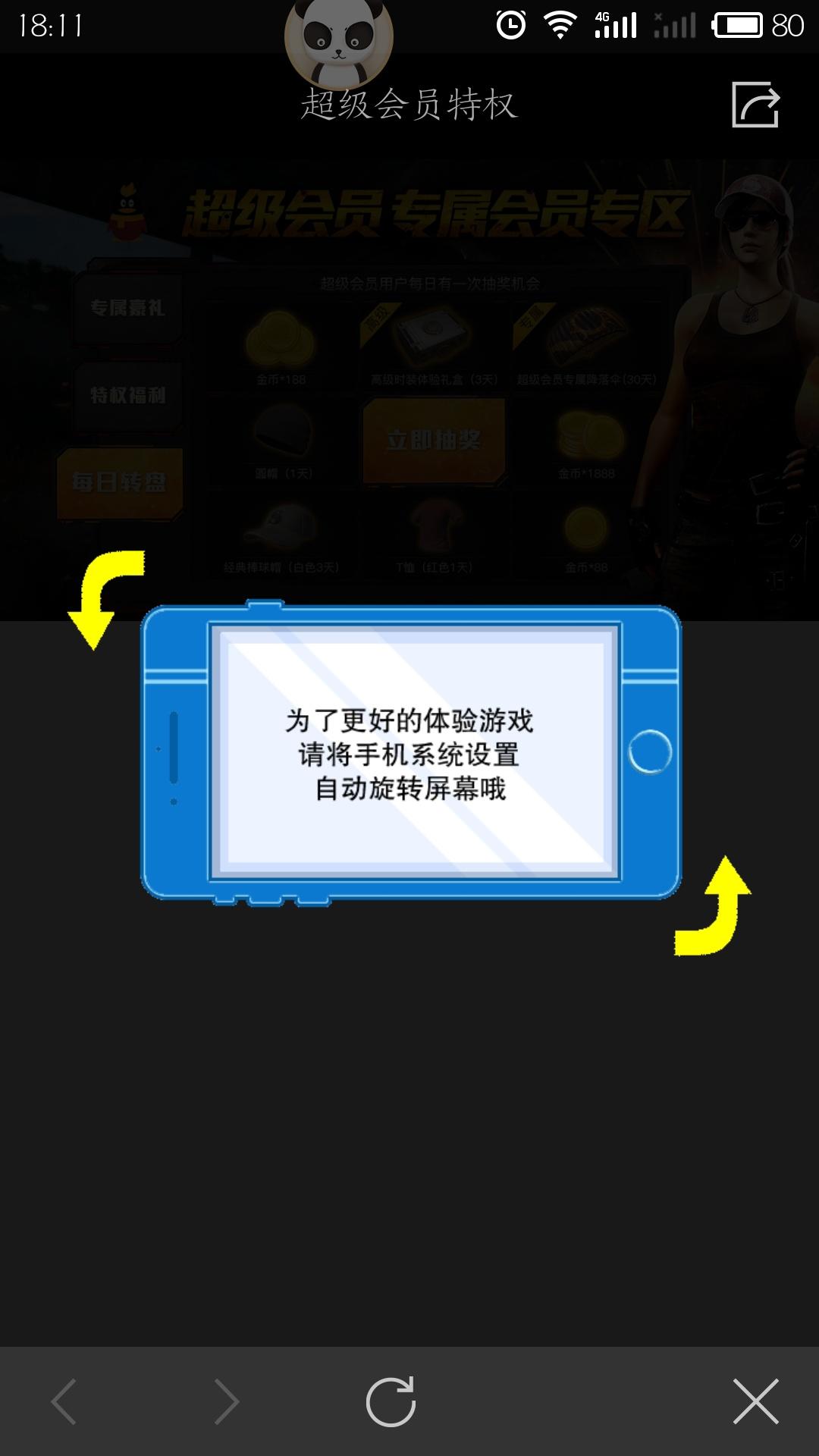 在游戏里面打开一些需要横屏的网页,非要开手机的旋转屏幕功能,要不然就不允许浏览。问题是隔壁天美的游戏内,打开需要横屏的网页就不用打开什么屏幕旋转。希望这点可以向隔壁学习一下。