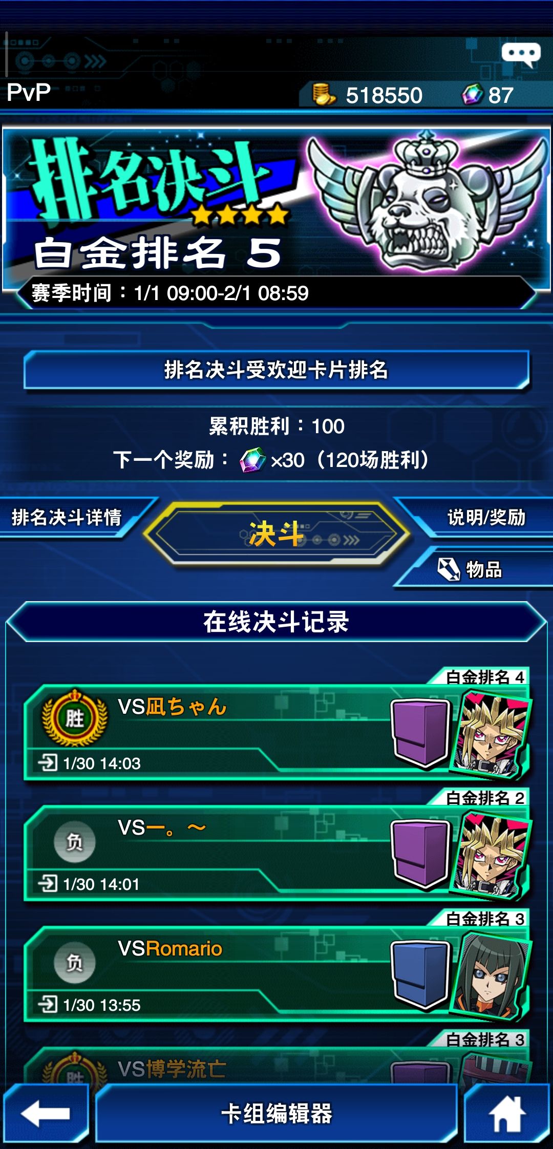 真红眼卡组进阶版,平民上白金5