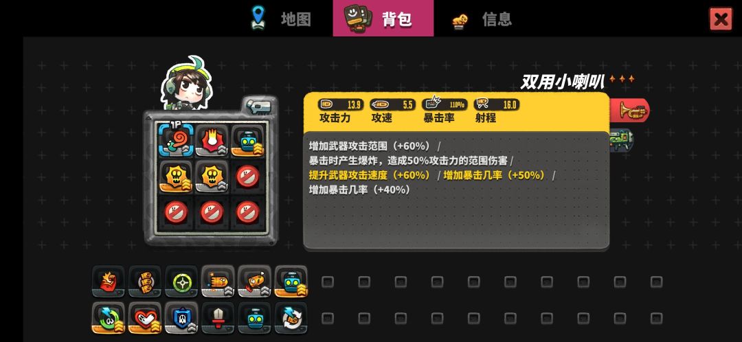 110%的暴击率在加个双攻速还有喇叭简直就是割草